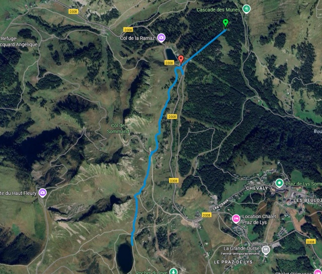 Départ du prarking au dessus de Praz de Lys, avant le lac du Roy |
