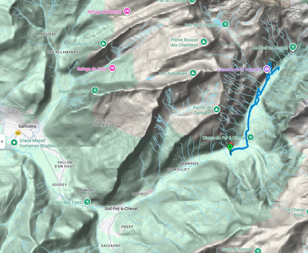 Une promenade au coeur du cirque et avec l'omniprésence des torrents et cascades Attention le tracé du chemin peut varier d'une saison à l'autre en fonction des caprices des torrents |